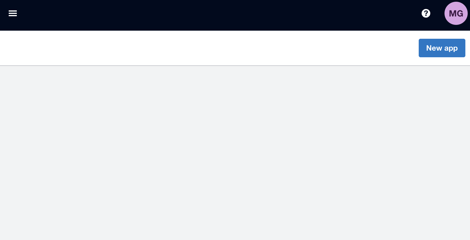 You will see the My Apps page. Click the New app button in the top-right corner.
