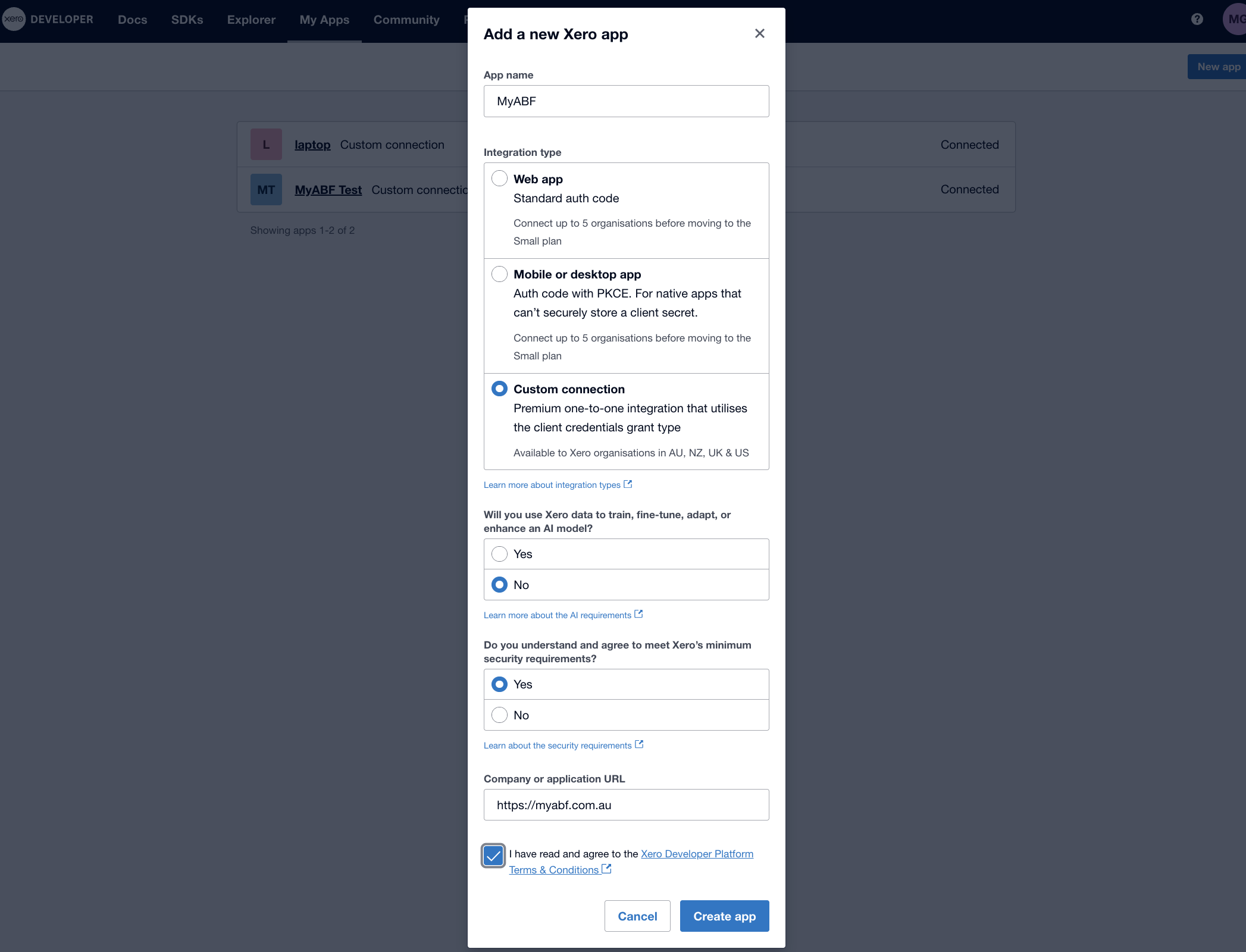 You create this connection in the Xero Developer Portal — a free part of the Xero website that any Xero account holder can access.