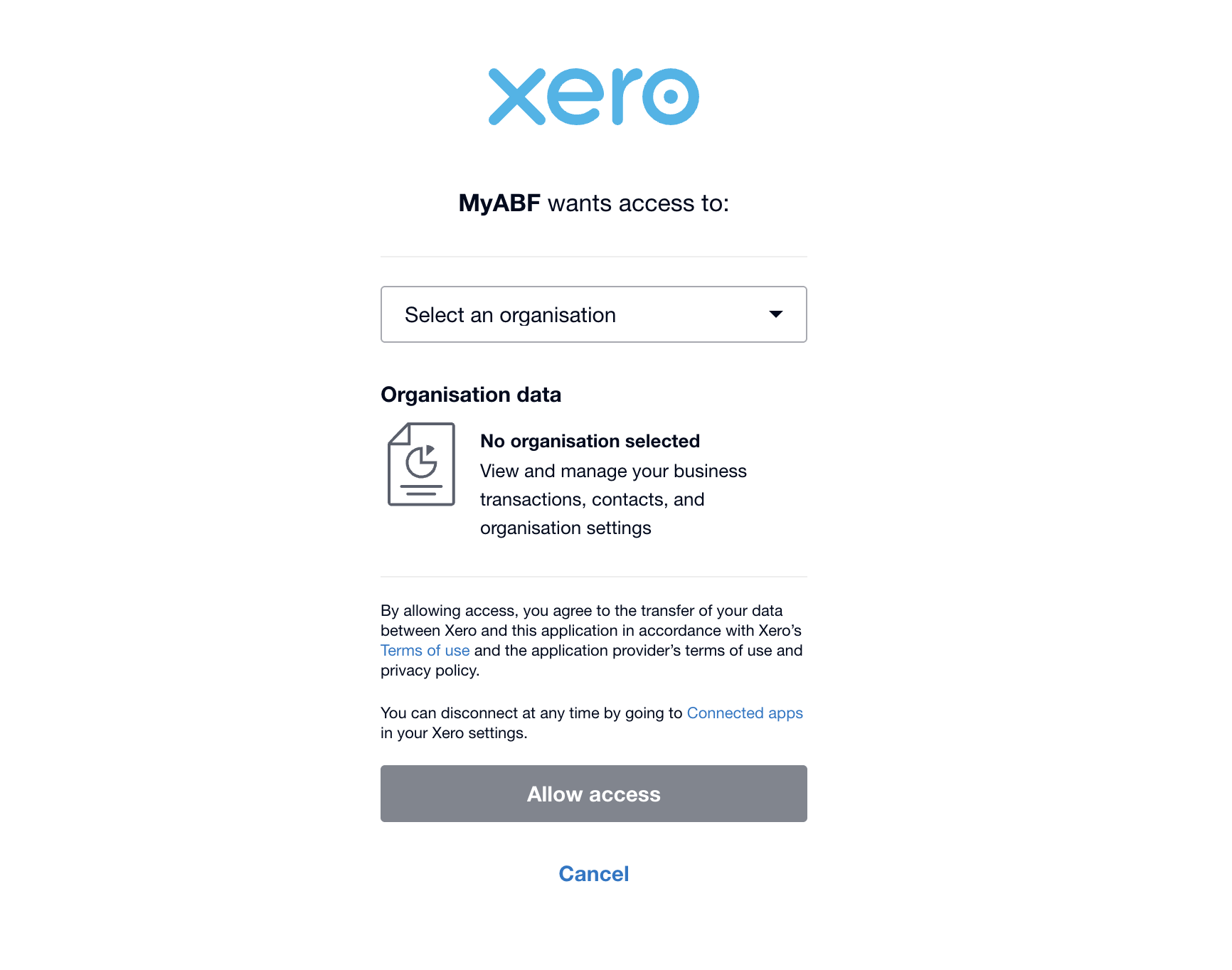 A Xero account with administrator access to the ABF’s production Xero organisation. If you are not already an administrator, ask your Xero administrator to invite you.