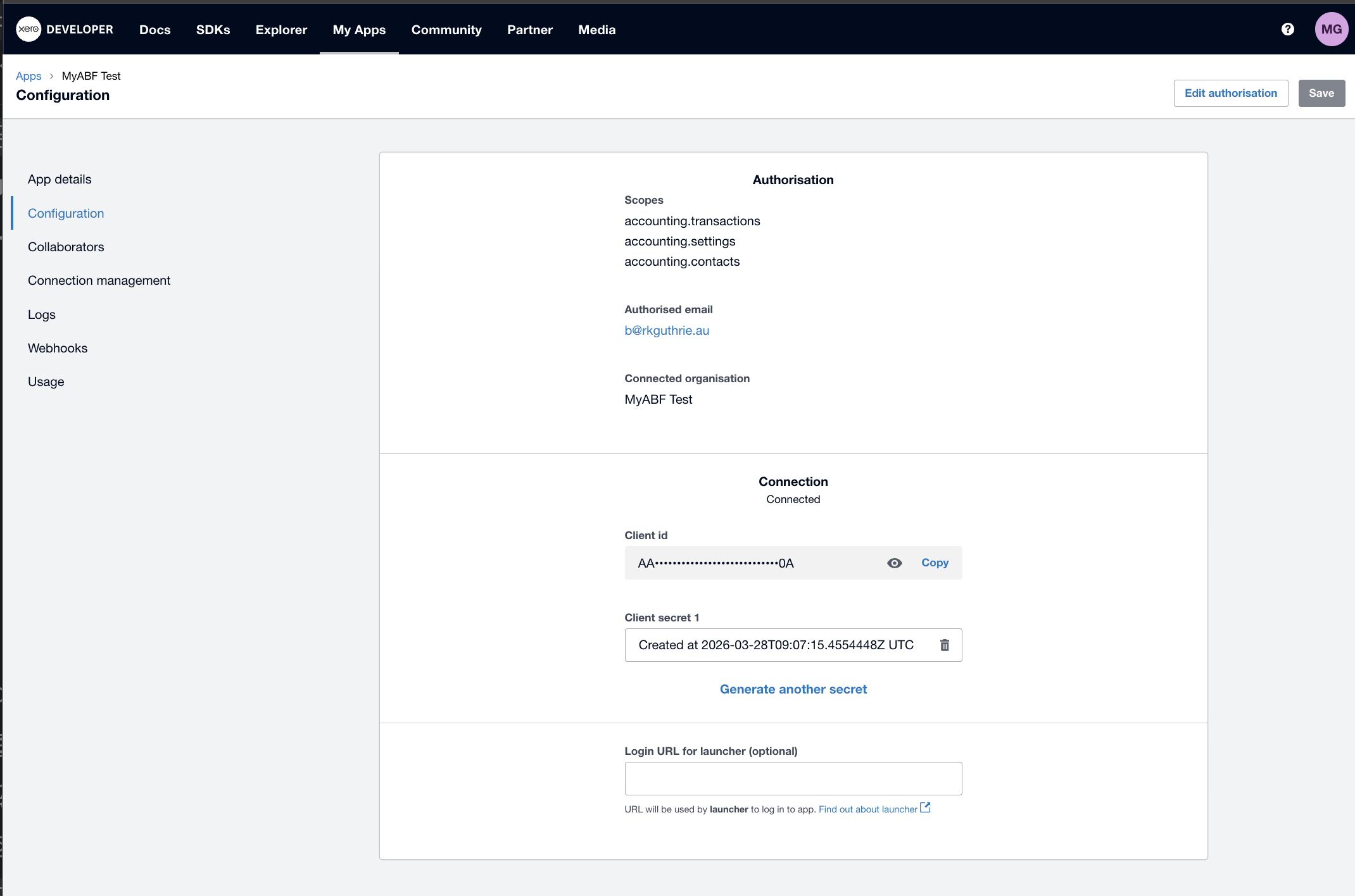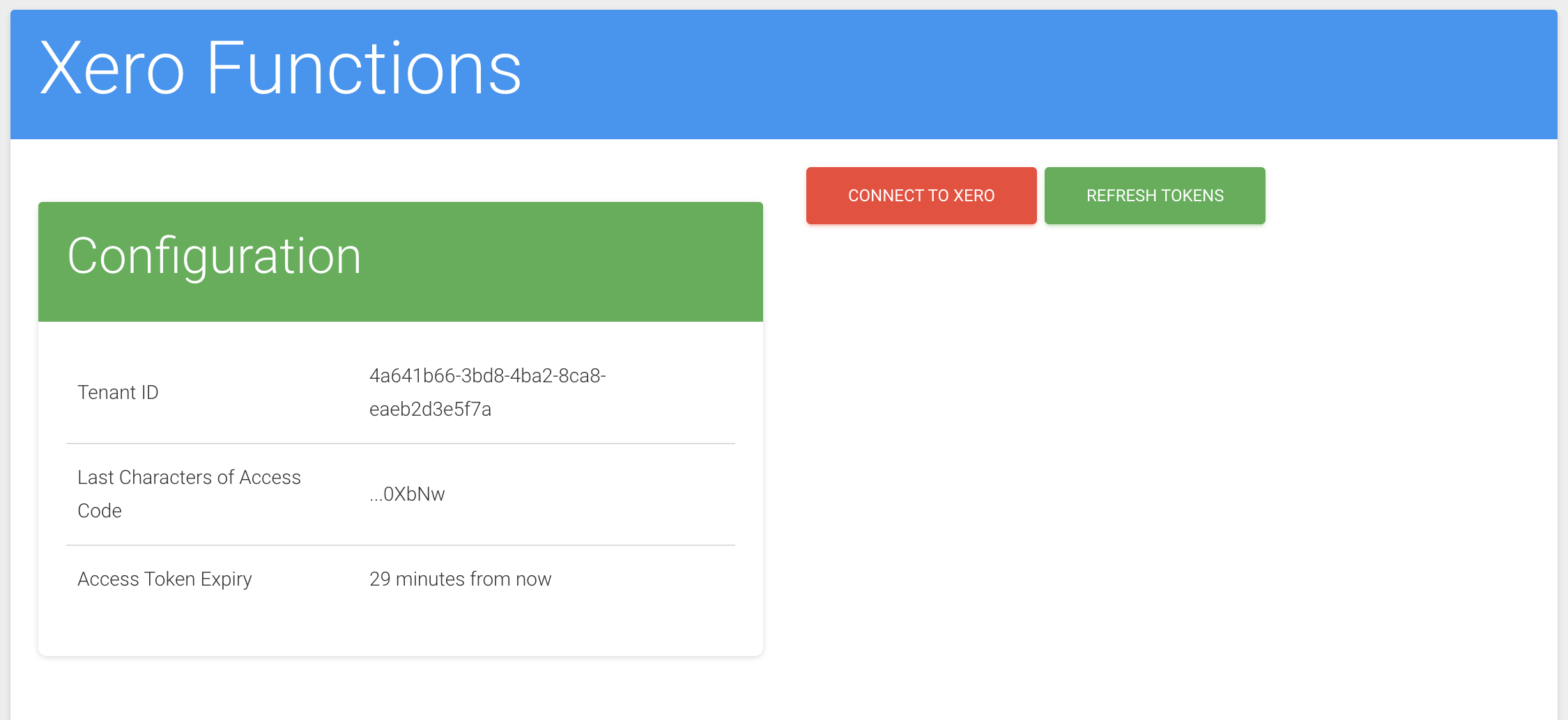 Use the API playground on the Xero administration page to confirm the end-to-end connection is working.