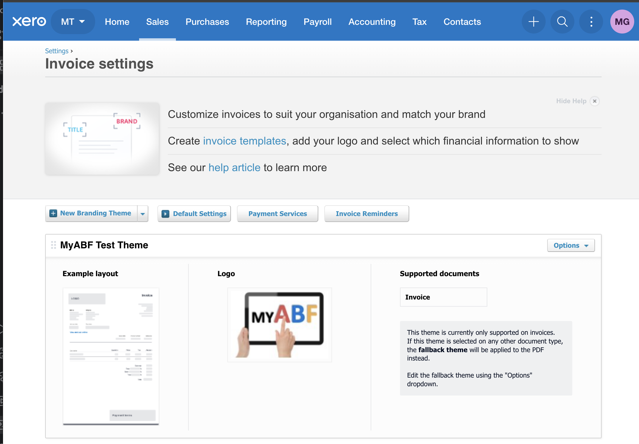 Within Xero, go to Settings and then under Sales go to Invoice Settings.